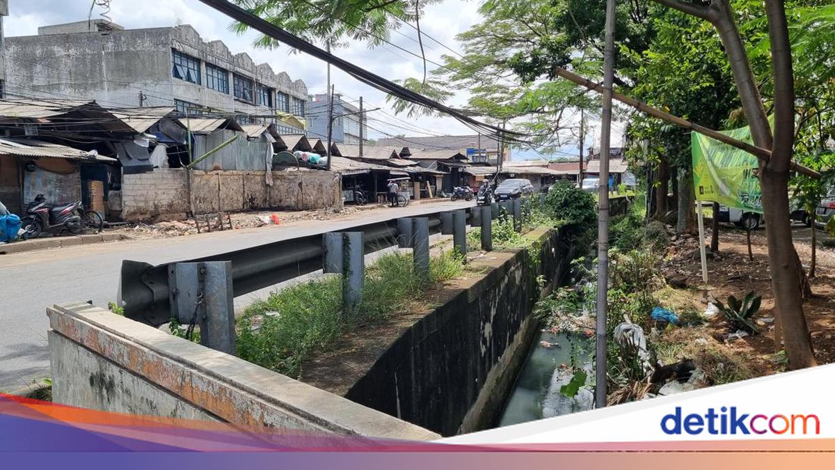 Monitor detikcom Am Standort betrug die Breite des Grabens am Freitag (01.08.2026) nur etwa 1 Meter. Das Wasser ist trüb und schwarz. Rund um den Graben sieht man Büsche und Erdhügel, in denen Müll verstreut ist.