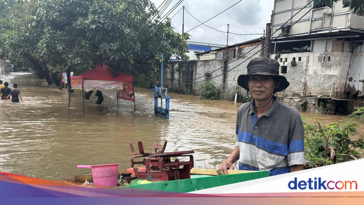 Die Geschichte eines reisenden Fischhändlers in Bekasi, der durch Überschwemmungen geht, um Geld zu verdienen