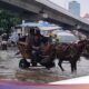 Flut auf Jalan Gunung Sahari, Jakarta, beginnt zurückzugehen. Jetzt können Autos diese Straße passieren.