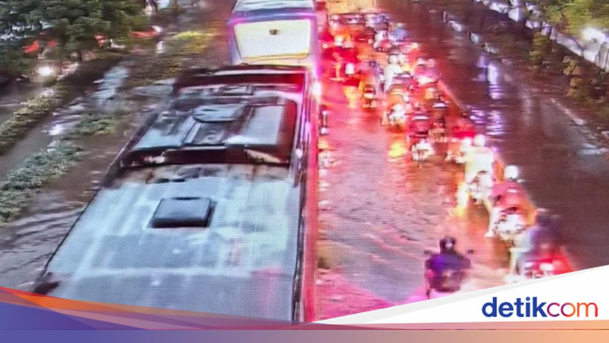 Nach wie vor appellierte TMC Polda Metro an Autofahrer, beim Überqueren vorsichtig zu sein. Auf dem hochgeladenen Foto ist zu erkennen, dass die Straße von Hochwasser überschwemmt wurde.