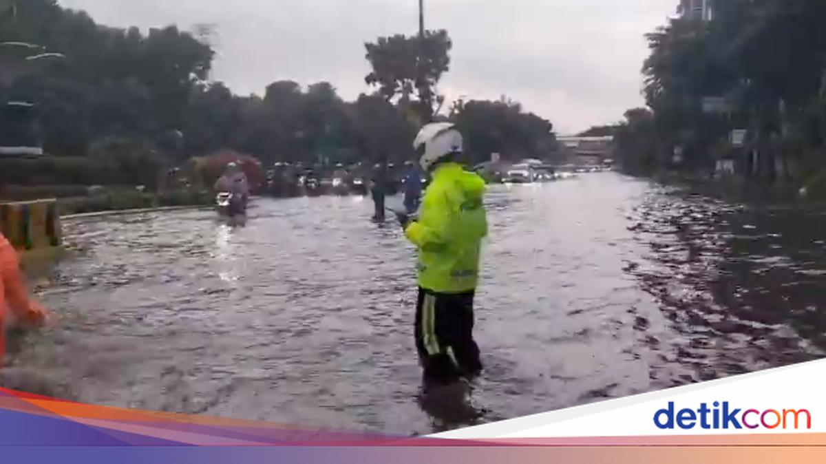 In dem von TMC Polda Metro Jaya hochgeladenen Video berichteten Beamte, dass Fahrzeuge aufgrund der Überschwemmung nur auf der rechten Spur passieren könnten.